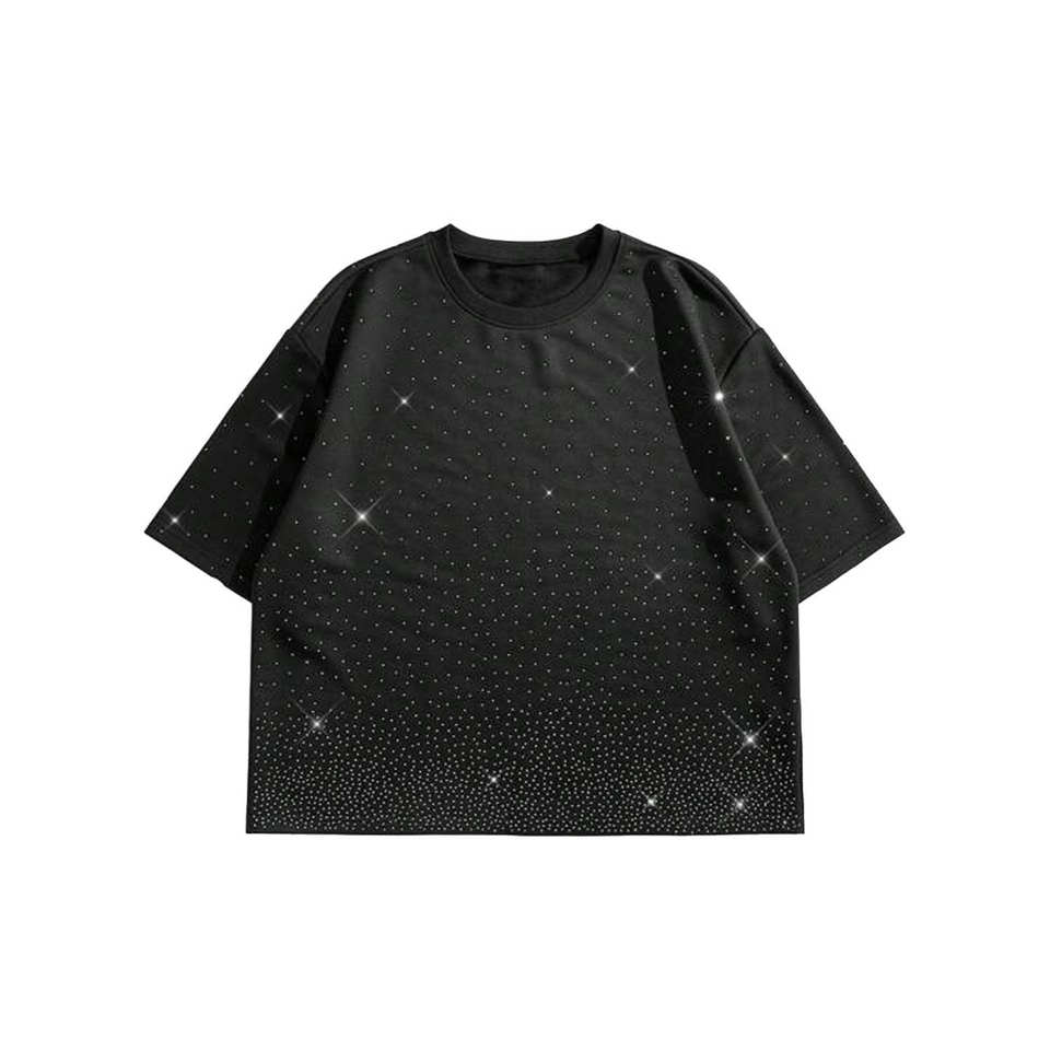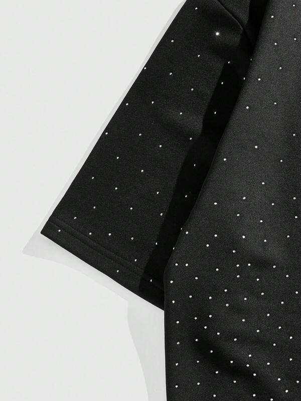 T-shirt pour homme avec logo personnalisé imprimé, 180 GSM, col rond, manches courtes, tissu tricoté, strass, hip-hop, tee-shirt uni