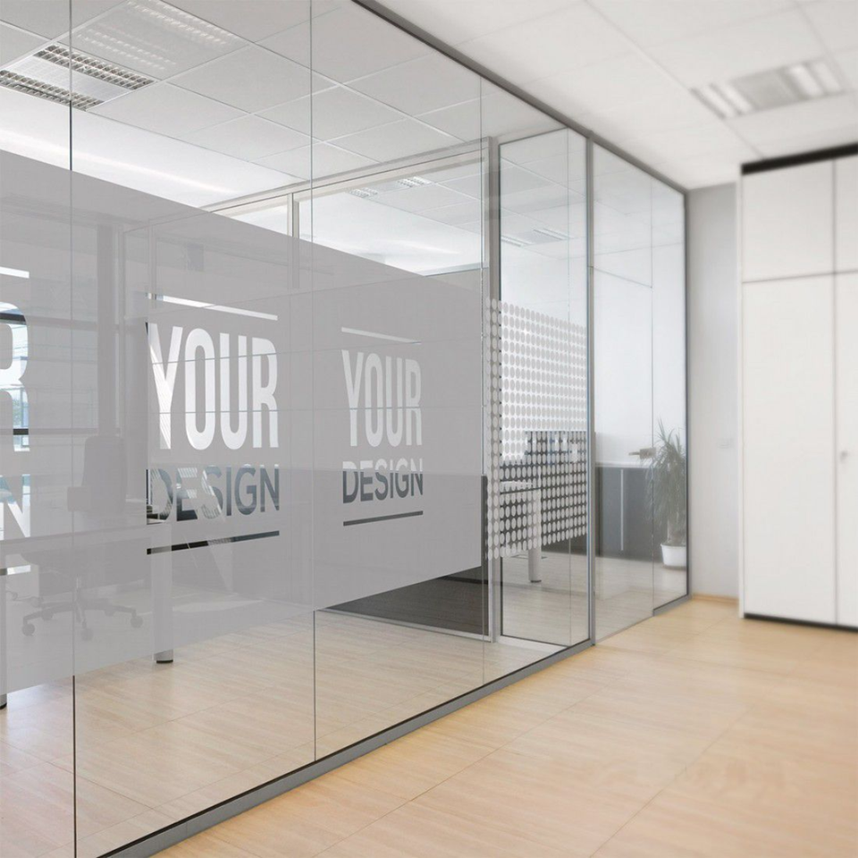 Autocollant de fenêtre en film PVC givré imprimé avec logo personnalisé, auto-adhésif ou à adhérence statique, pour bureau, maison et hôtel