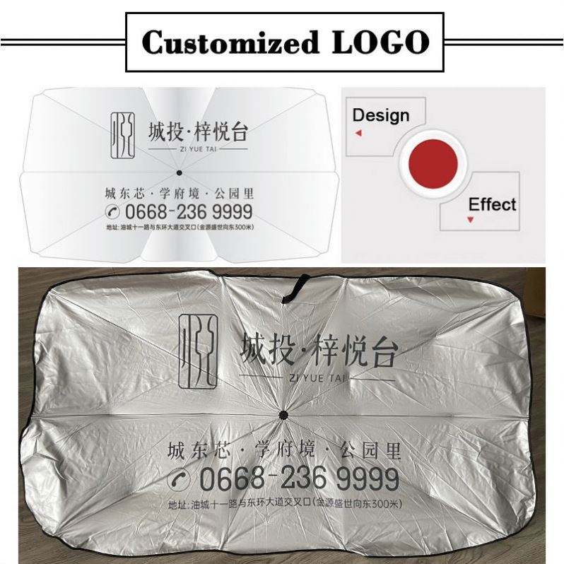 Pare-soleil pliable et rétractable pour pare-brise de voiture avec logo personnalisé imprimé