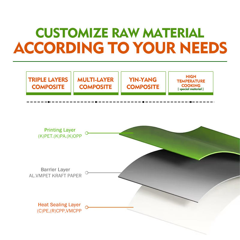 Style Options:Flat Bottom,Stand up, Side Gusset, Quad Seal, Middle Seal, etc.
