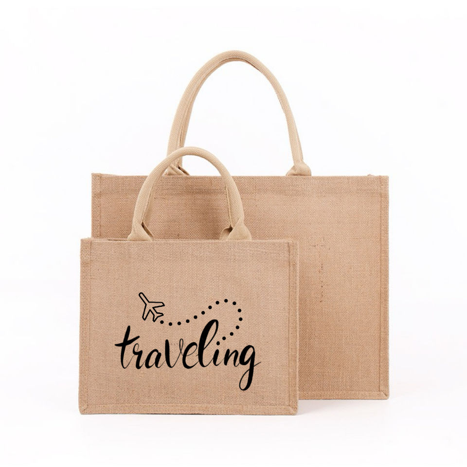 Sac fourre-tout en jute de plage pour courses d'épicerie supermarché réutilisable imprimé logo personnalisé