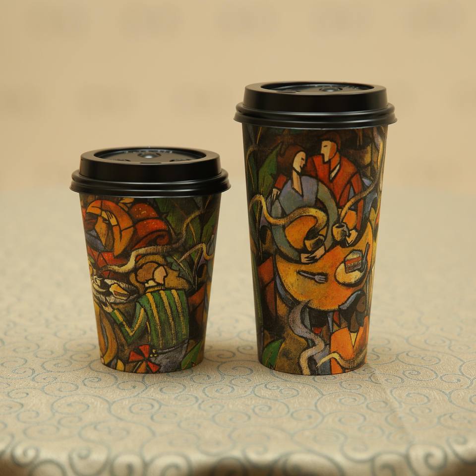 Gobelet en papier pour boissons chaudes, café, thé, avec couvercle, personnalisé avec logo imprimé, simple couche, noir et blanc, 8 oz, 12 oz, 16 oz