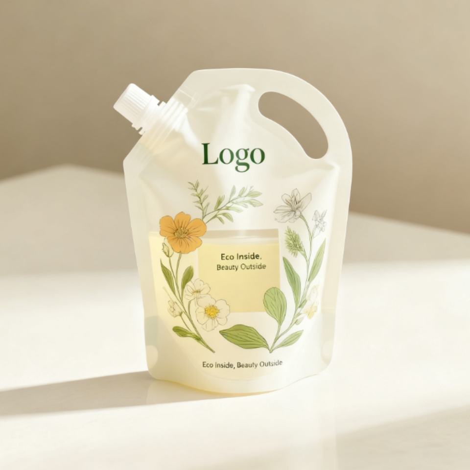 Pochette à bec verseur personnalisée avec logo imprimé 250ML 500ML 1000ML, emballage plastique PET/PE autoportant pour savon liquide et détergent avec fenêtre transparente