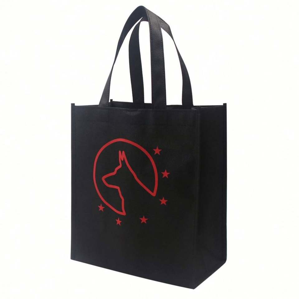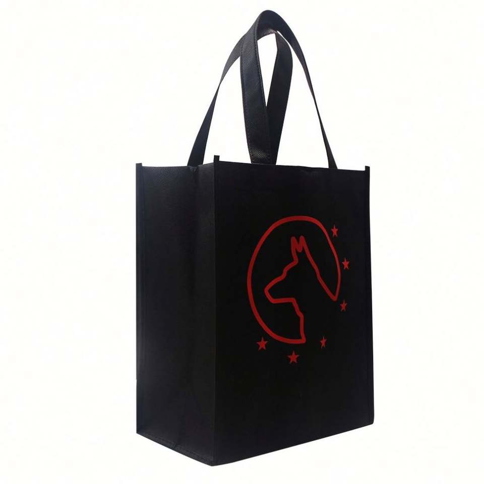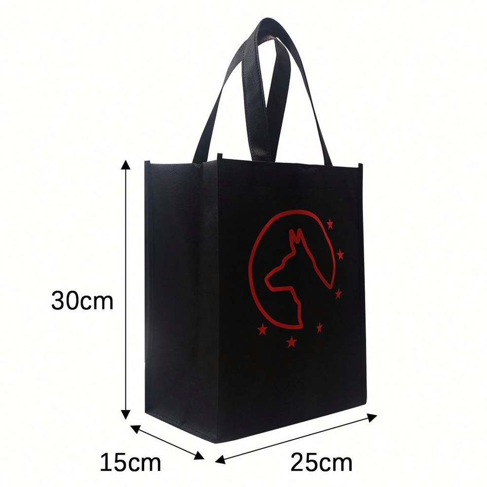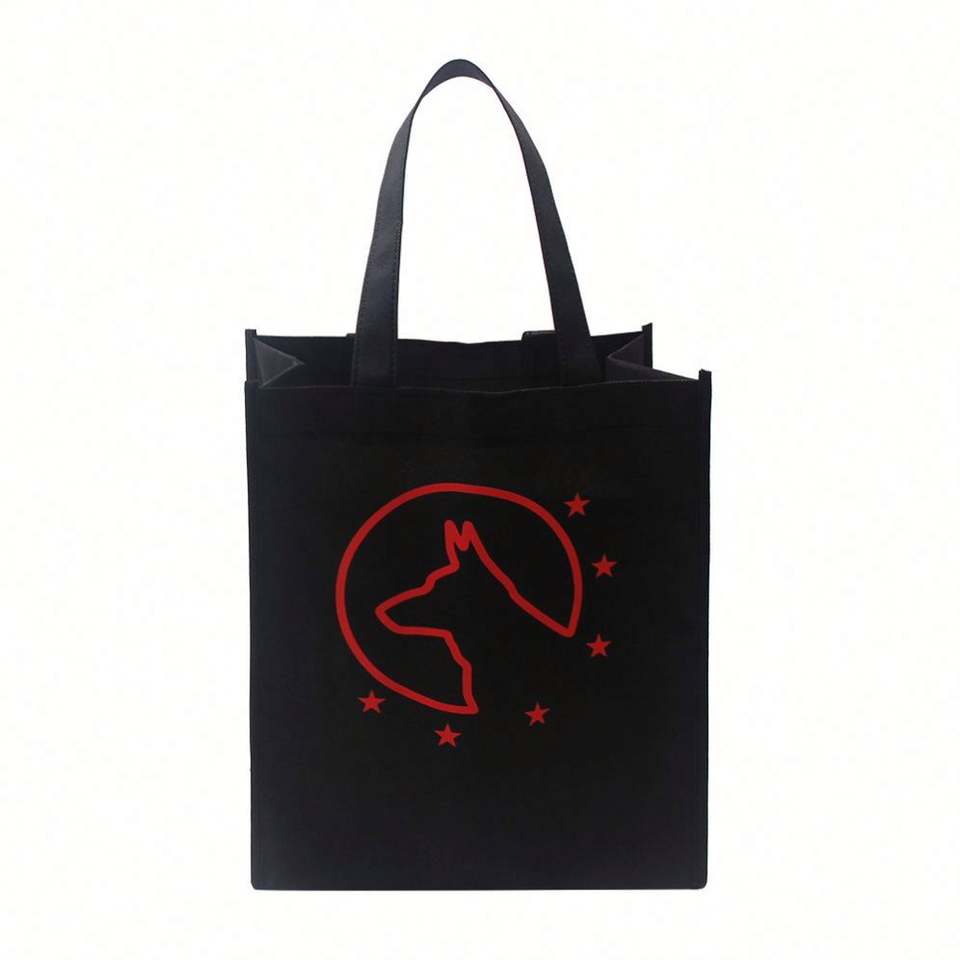 Sac fourre-tout réutilisable en tissu non tissé noir à imprimé animal, personnalisé avec logo, pour le shopping et les voyages, fabriqué à partir de matériaux recyclés
