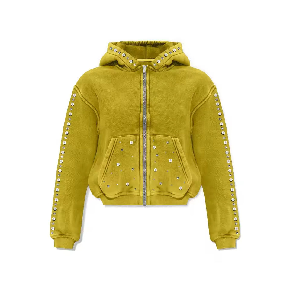 Sweat à capuche zippé avec logo personnalisé imprimé vintage brodé en strass Échantillon gratuit vierge Sweats à capuche en strass design pour hommes