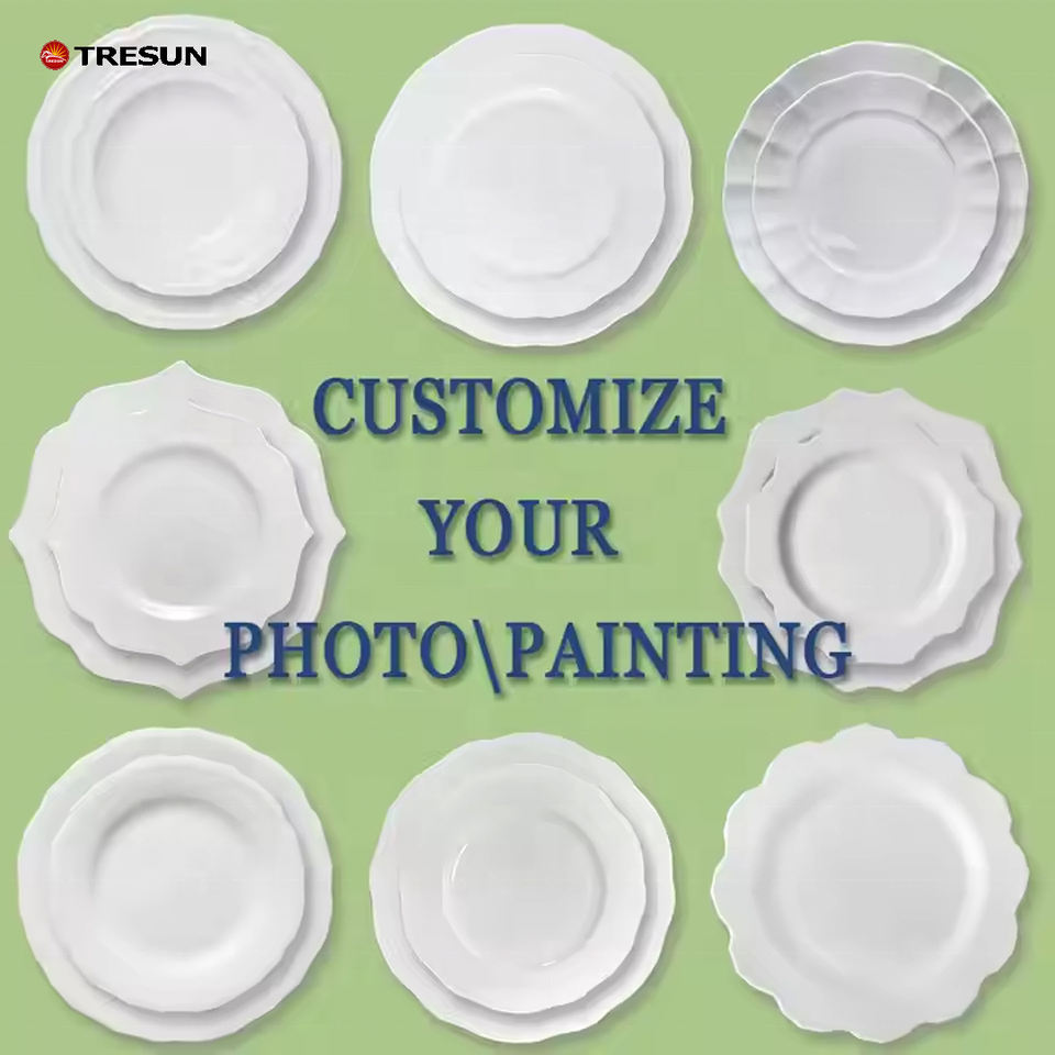 Assiette en porcelaine blanche imprimée avec logo personnalisé vaisselle de restaurant assiettes en céramique