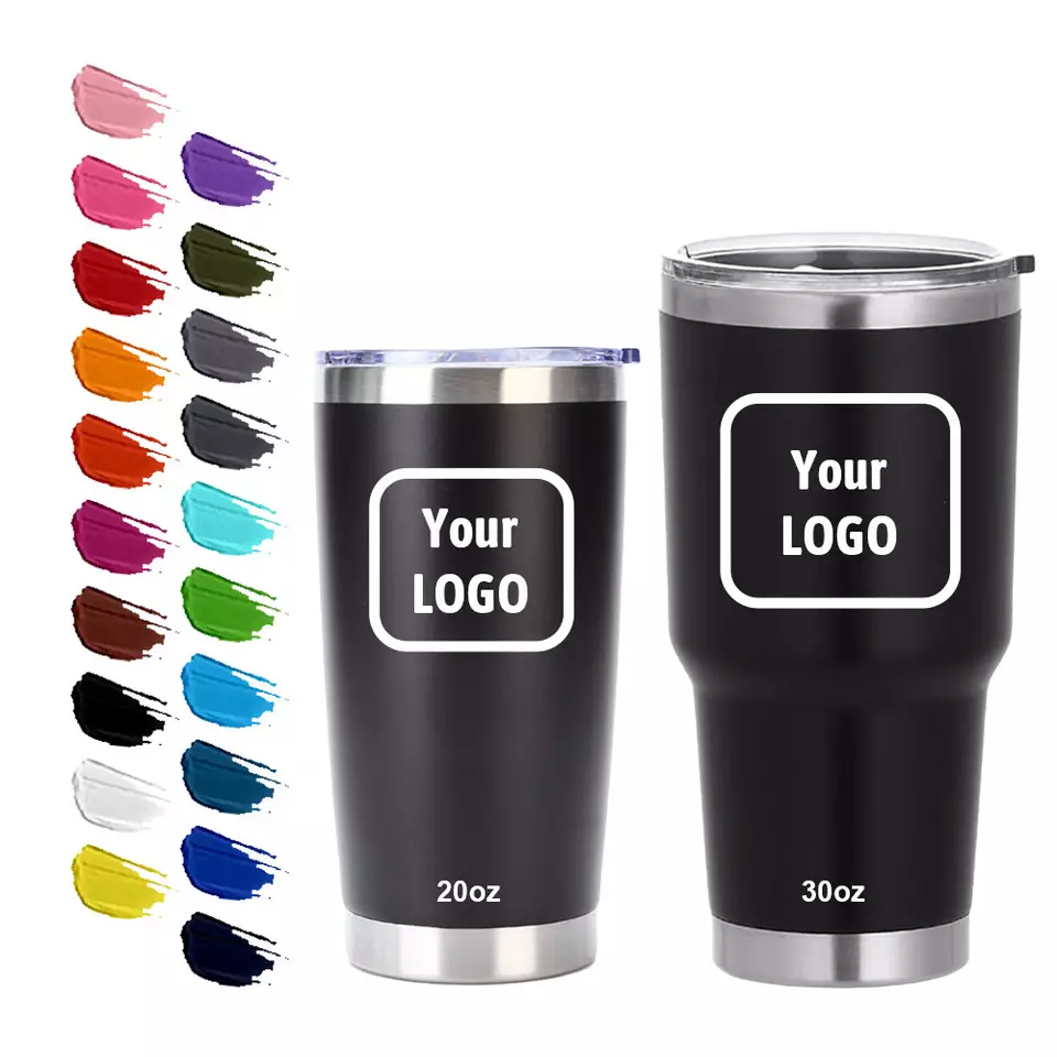 Mugs de voyage isothermes sous vide en acier inoxydable avec pailles, style américain, 20/30 oz, revêtement poudré, impression de logo personnalisée