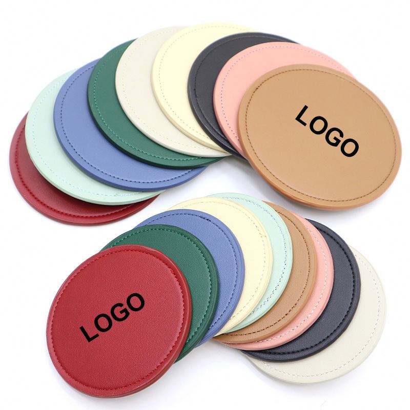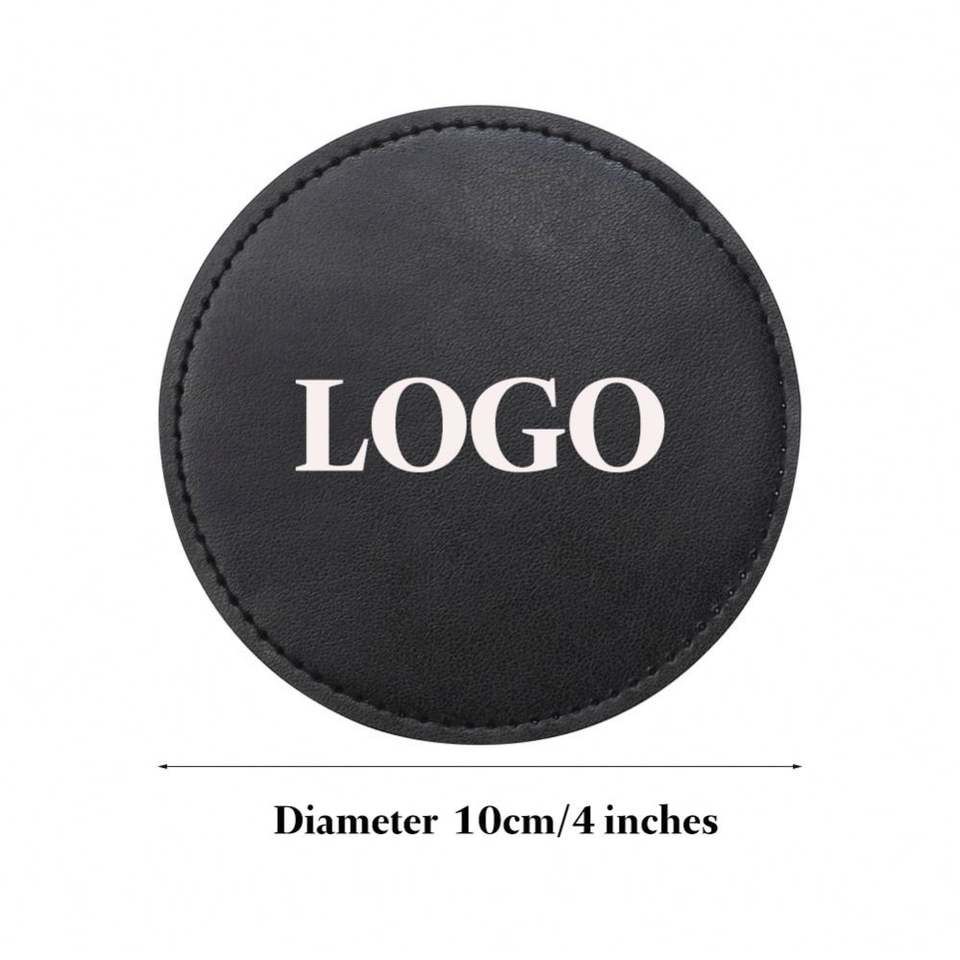 Sous-verre en cuir PU vierge personnalisable avec logo imprimé, multicolore, avec logo en relief