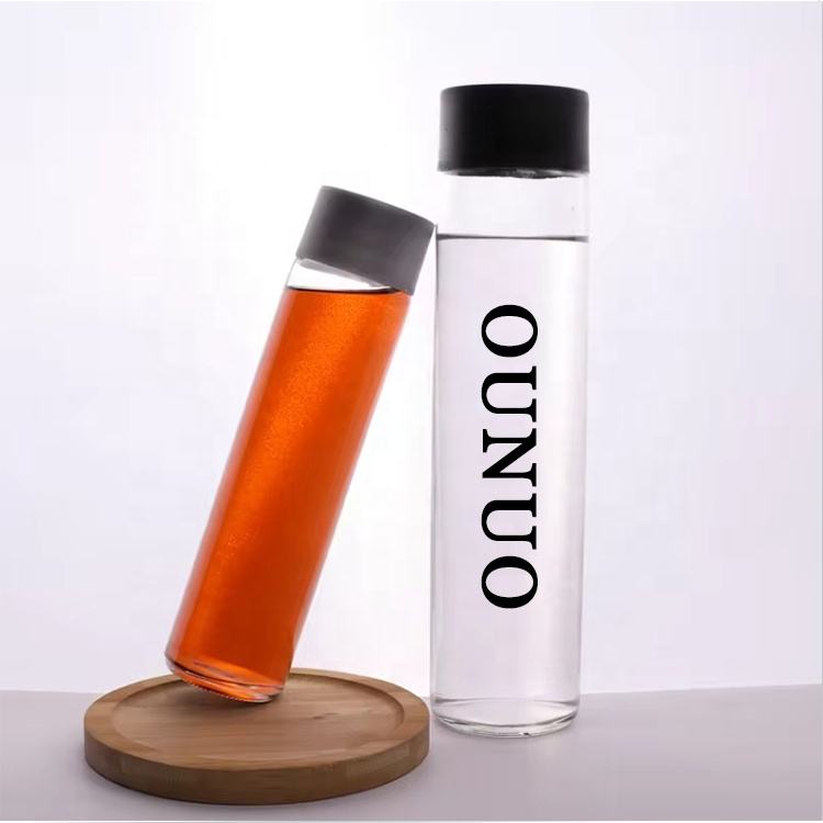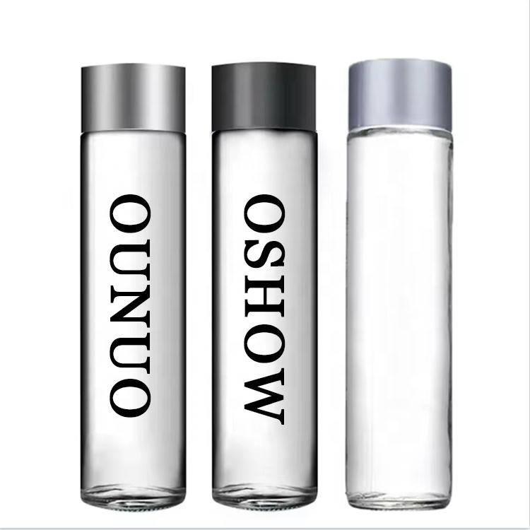 Impression de logo personnalisé Bouteille en verre transparente de qualité alimentaire pour eau minérale, lait, jus, boisson Bouteille d'eau potable en verre Voss avec bouchon