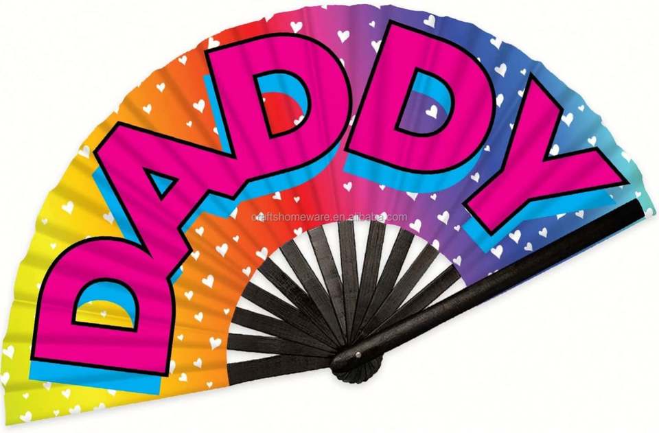 Éventail pliant en satin de polyester et bambou de 33 cm avec impression de logo personnalisé, décoration peinte, éventail arc-en-ciel pour la fierté gay