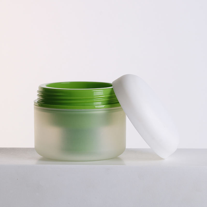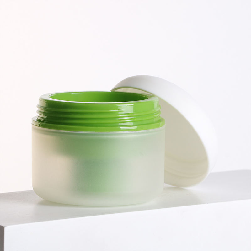 Pot en verre rond vert mat avec impression de logo personnalisée pour lotion, soin de la peau, crème pour le visage et le corps, vernis à ongles, gel