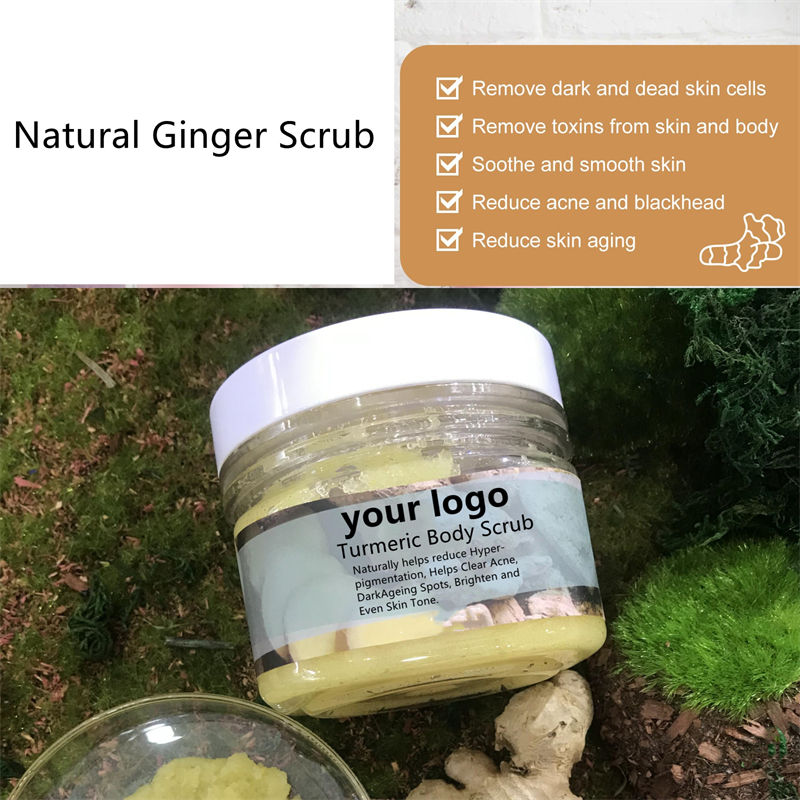 Logo personnalisé, vente en gros, peau, Grain de gingembre, sel de mer, peau claire, gommage du cuir chevelu, gommage pour le visage et le corps