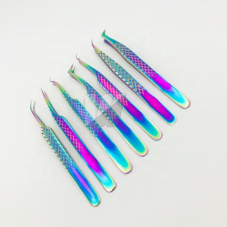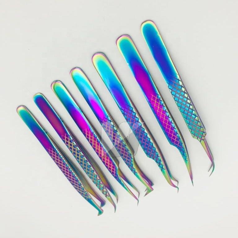 Pince à épiler en acier inoxydable durable et professionnelle arc-en-ciel avec poignée en diamant de haute qualité avec logo personnalisé