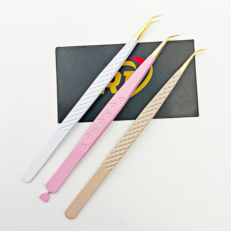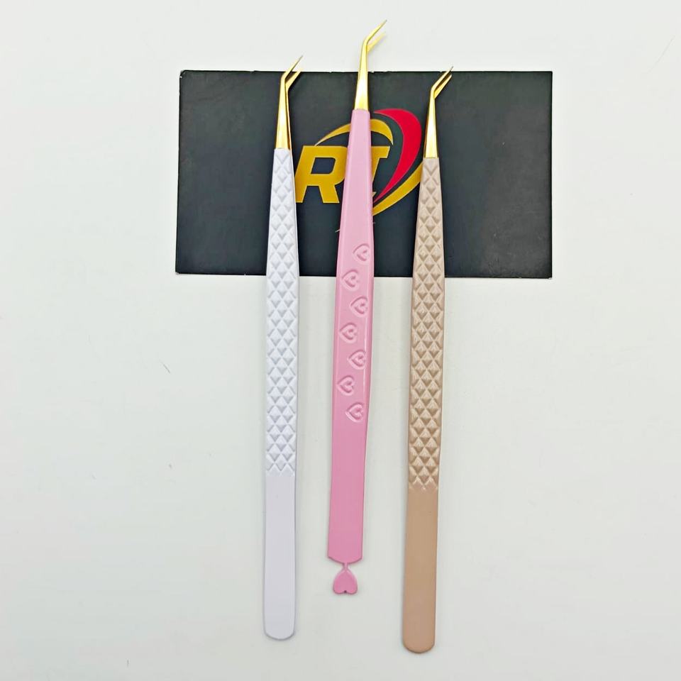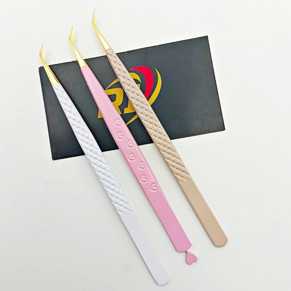 Pince à épiler d'isolation professionnelle antistatique à 45 degrés en acier inoxydable avec logo personnalisé pour extensions de cils