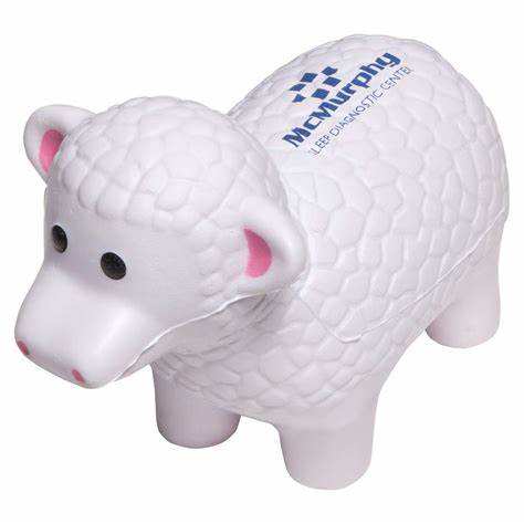 Balle anti-stress en mousse PU en forme de chèvre blanche, personnalisable avec logo, pour promotion