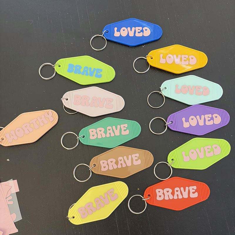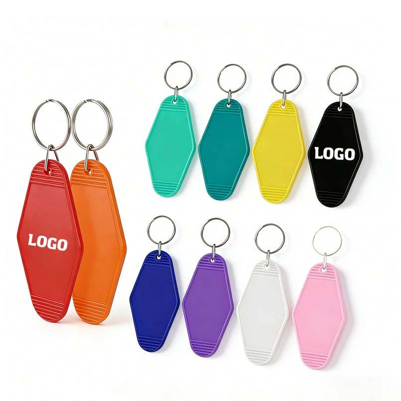 Porte-clés de motel rétro vintage en plastique vierge personnalisé avec logo promotionnel, porte-clés de motel avec boucle, code QR