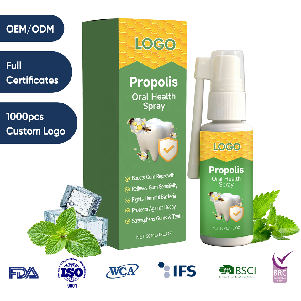 Spray buccal à l'extrait de propolis avec logo personnalisé 30 ml pour des solutions personnalisées de fraîcheur respiratoire