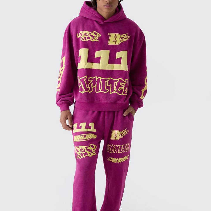 Logo personnalisé imprimé bouffant survêtement lourd survêtement unisexe de haute qualité à capuche et pantalon de survêtement ensemble imprimé bouffant survêtement