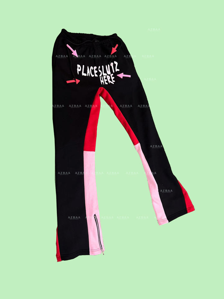 Pantalon de survêtement évasé imprimé bouffant grande taille ceinture élastique pantalon de survêtement évasé empilé pour homme avec pantalon à fermeture éclair en bas
