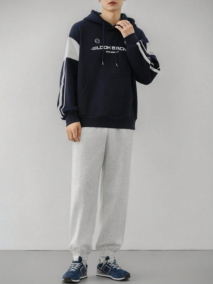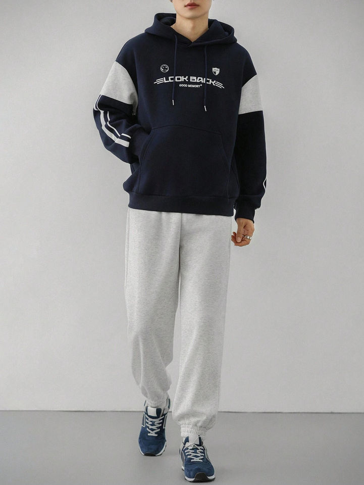 Ensemble de survêtement en molleton de coton imprimé avec logo personnalisé, sweat-shirt à capuche à manches longues pour homme, survêtement décontracté écologique