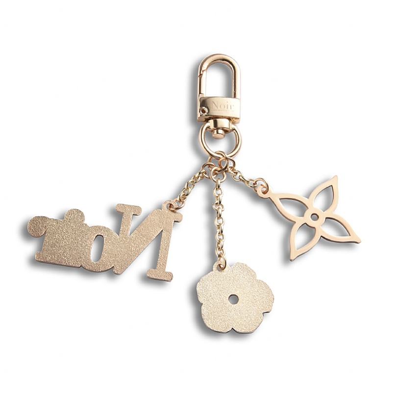 Porte-clés mini sac à main en métal émaillé souple, motif fleur violette ajourée, avec logo personnalisé
