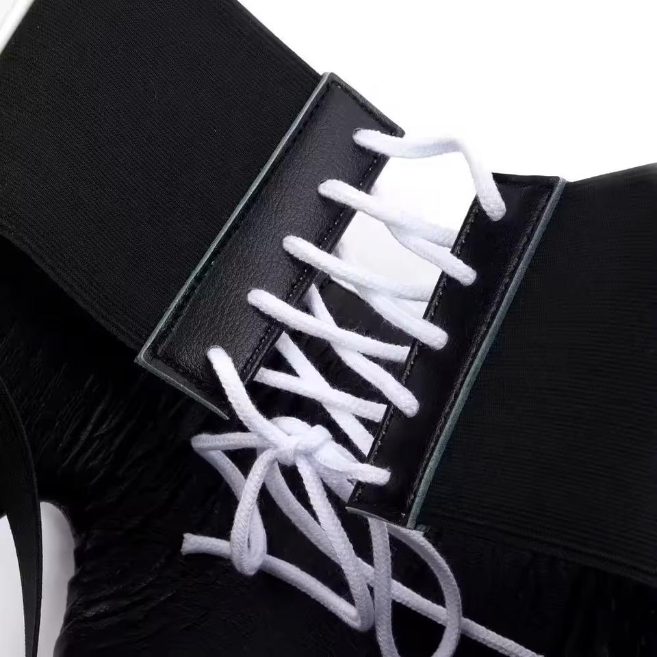 Ensemble de boxe en dentelle violette avec logo personnalisé, équipement de fitness et d'arts martiaux en cuir de haute qualité, ensemble de sparring de boxe réglable à lacets CP-BHG-16
