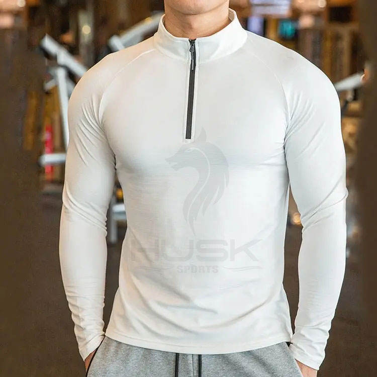 Logo personnalisé Quarter Zip T-shirt à manches longues Hommes Fitness Gym Wear Muscle T-Shirts