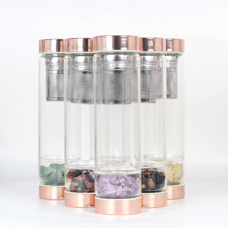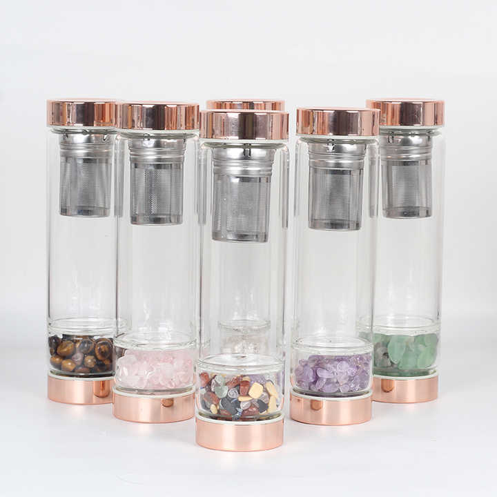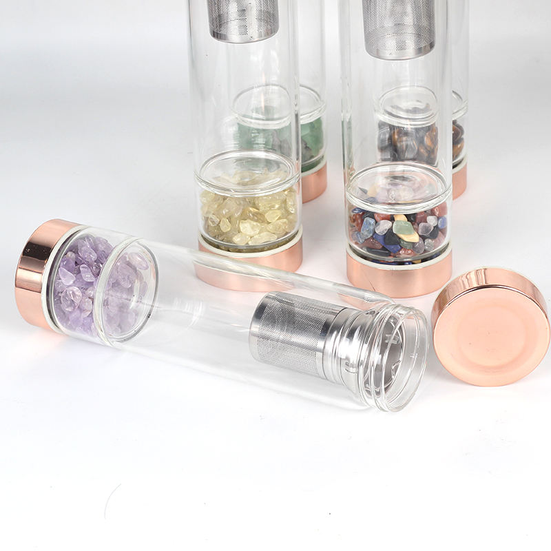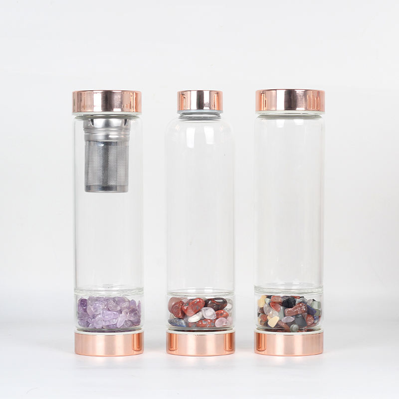 Bouteille en cristal avec couvercle en or Rose, pierres précieuses naturelles, en Quartz, avec Logo personnalisé