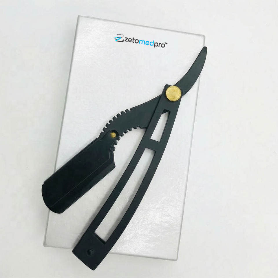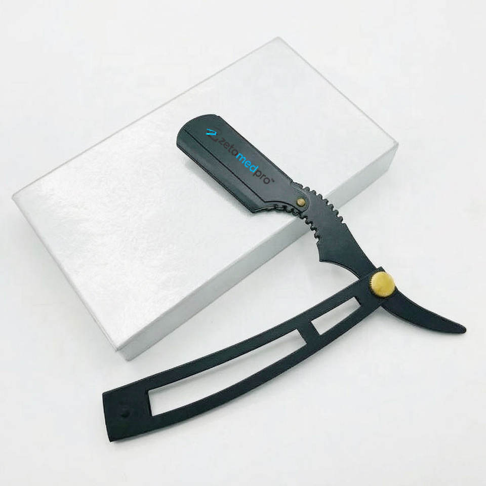 Rasoir personnalisé avec logo pour barbier, lame en acier durable pour le visage, le bikini et les aisselles, classique noir avec verrouillage à bascule