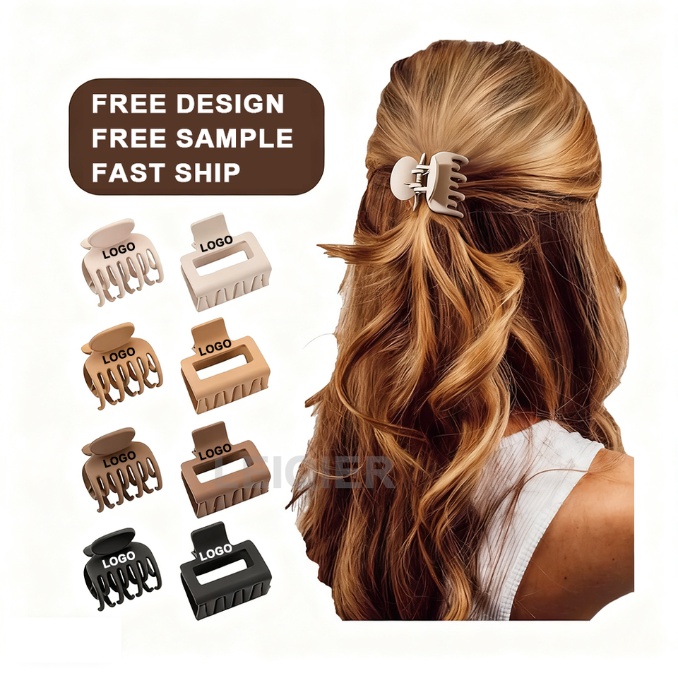 Logo personnalisé pinces à cheveux rectangulaires à double rangée de griffes pour femmes/filles style brosse à cheveux en plastique mat antidérapant pour cheveux fins/moyennement fins