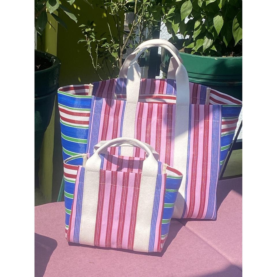 Logo personnalisé rayé en nylon recyclé fourre-tout sac à provisions sangle en coton poche intérieure écologique fermeture ouverte pour l'extérieur