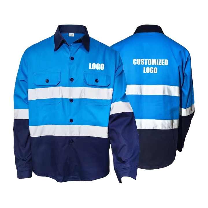 T-shirt en coton réfléchissant personnalisé avec logo, bande de sécurité pour vêtements de travail à manches longues haute visibilité, certifié BS, respirant pour la construction