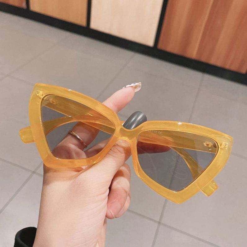 Lunettes de soleil polygonales bleues et jaunes rétro à logo personnalisé pour hommes, grandes montures, style œil de chat pour femmes