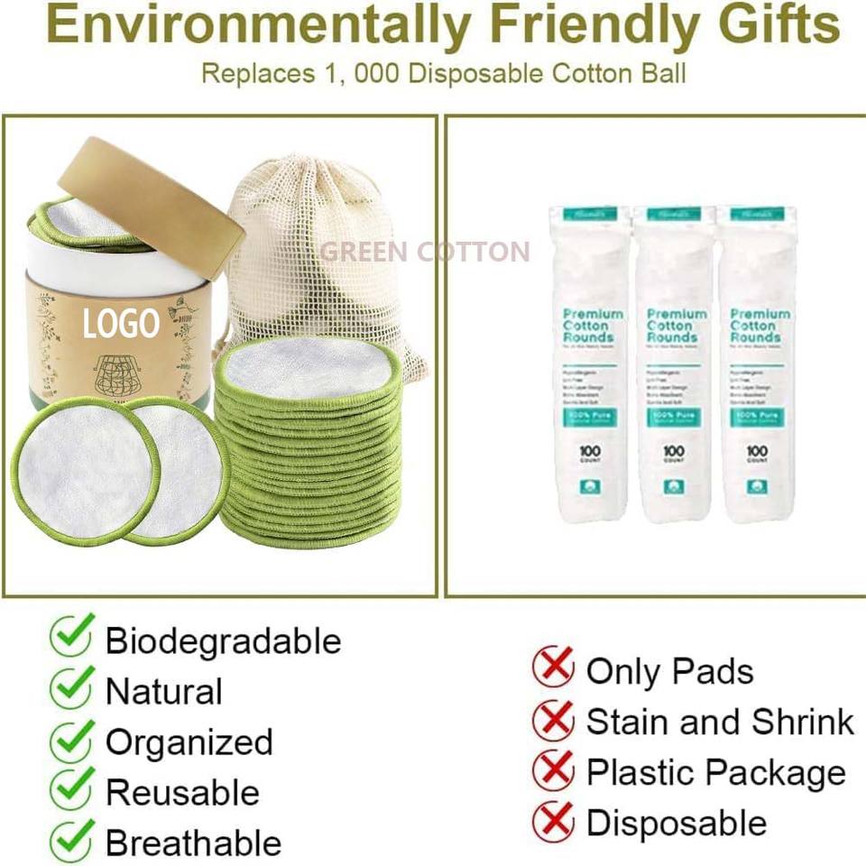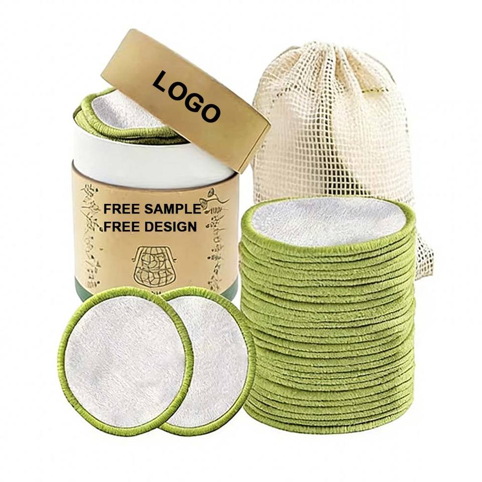 Tampons démaquillants réutilisables avec logo personnalisé, lingettes démaquillantes, coton de bambou, double face, tampons nettoyants pour le visage