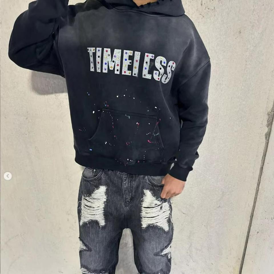 Sweat-shirt à capuche personnalisé avec logo en strass, imprimé diamant scintillant, streetwear, prix direct usine en gros