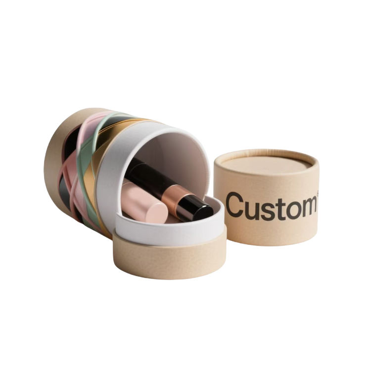 Boîte cadeau rigide en carton avec fenêtre transparente, emballage tube de luxe pour produits cosmétiques et outils de maquillage, avec logo personnalisé.