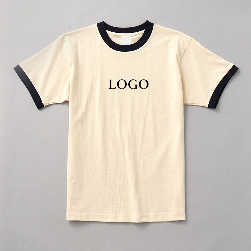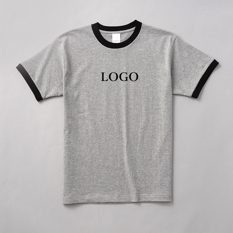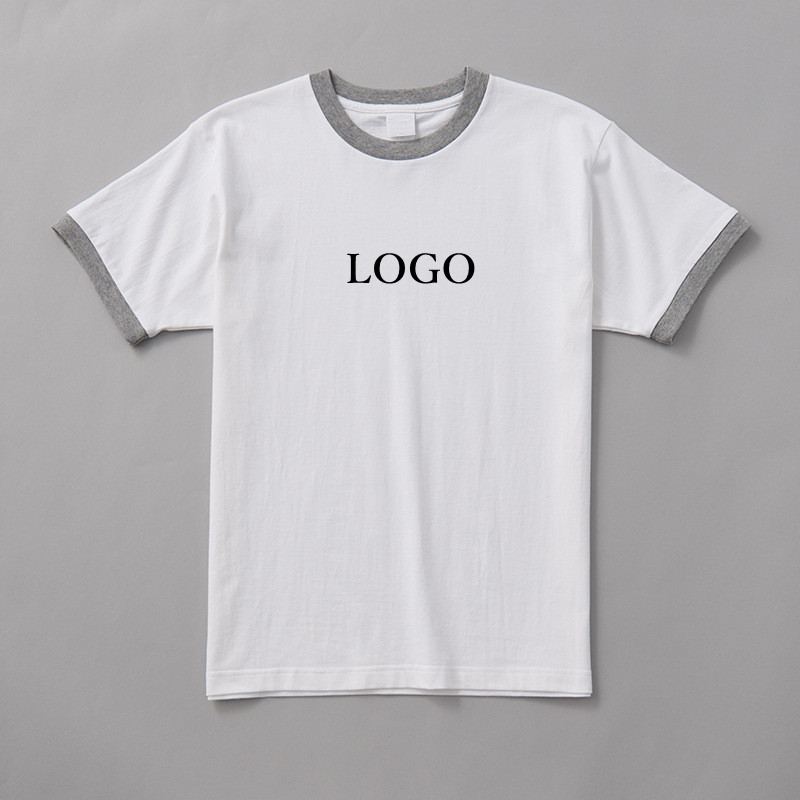 T-shirt personnalisé avec logo pour homme, col contrastant, manches courtes, en coton, tee-shirt décontracté d'été, streetwear imprimé, OEM, vente en gros, faible MOQ