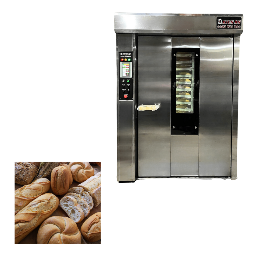 Four de cuisson commercial au gaz 24 plateaux avec logo personnalisé four rotatif facile à utiliser pour pain baguette avec chariot état neuf