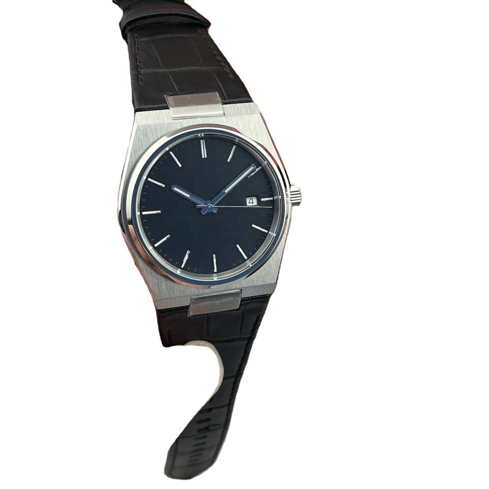 Montre classique de créateur avec cadran rond et logo personnalisé, étanche, bracelet en cuir véritable, avec boîte d'origine