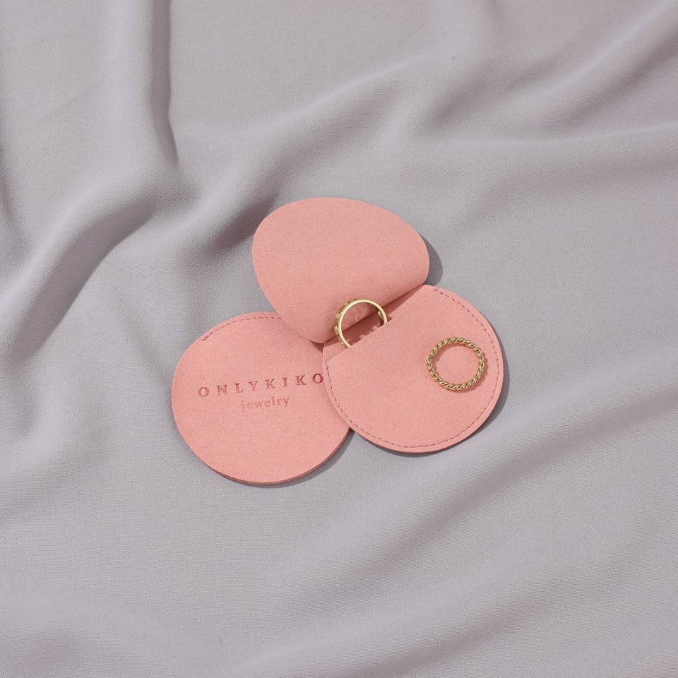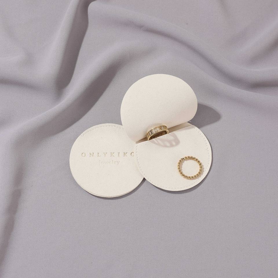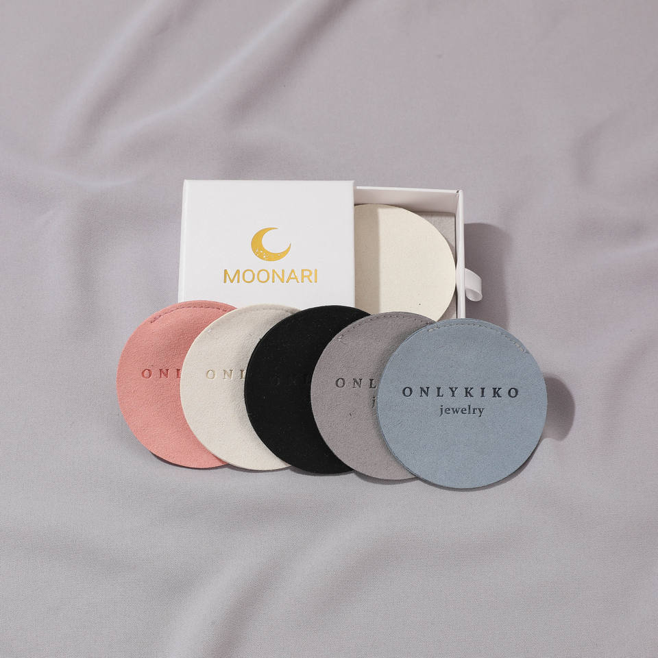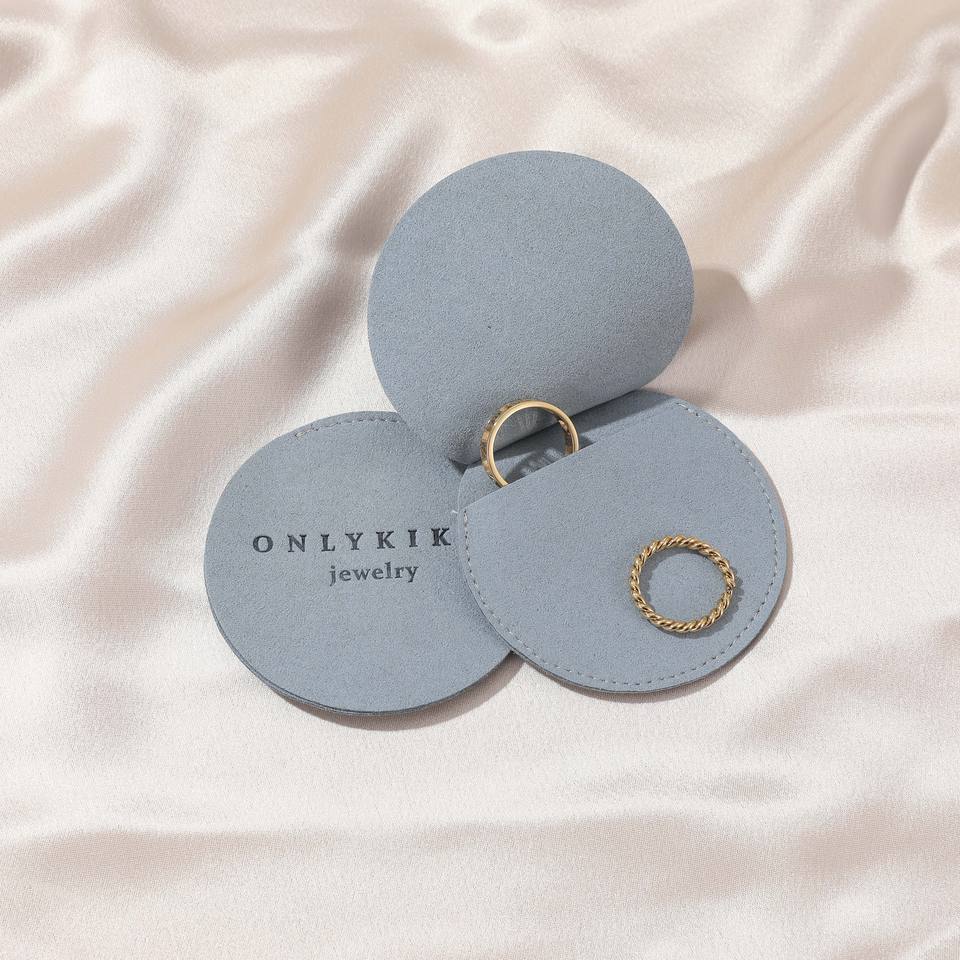 Pochette à bijoux ronde grise personnalisable avec logo, enveloppe à rabat pour boucles d'oreilles, sac cadeau en microfibre de velours blanc, emballage en gros