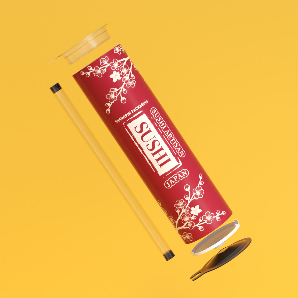 Tube en papier rond avec logo personnalisé pour l'emballage de sushis à emporter, écologique