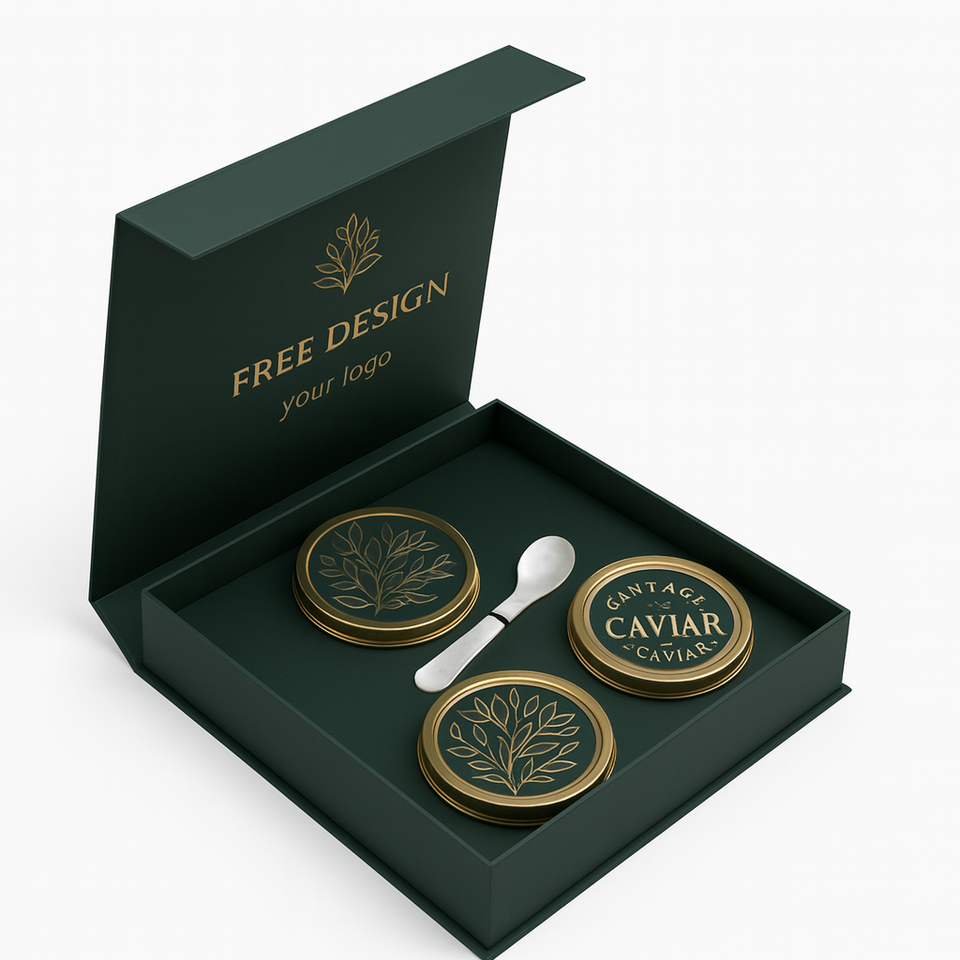 Boîte d'emballage de Caviar de perles, Logo personnalisé, cuillère de poisson volant de saumon russe, couvercle supérieur, emballage, boîte en papier cadeau de Caviar