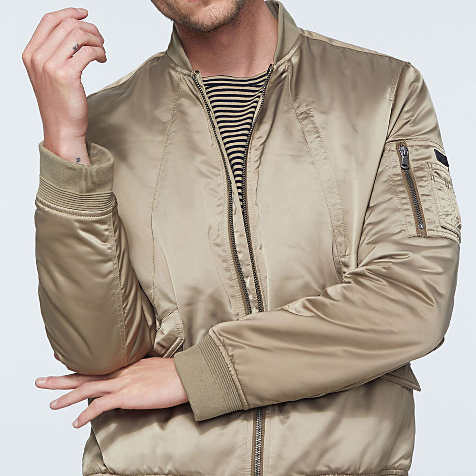 Blouson bomber en satin personnalisé avec logo pour homme, idéal pour l'hiver, prix abordable, grandes tailles disponibles.