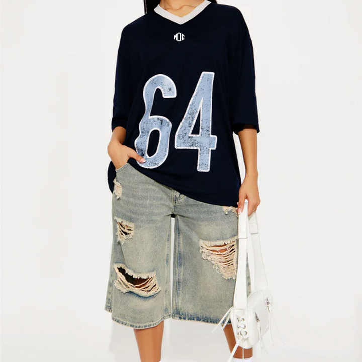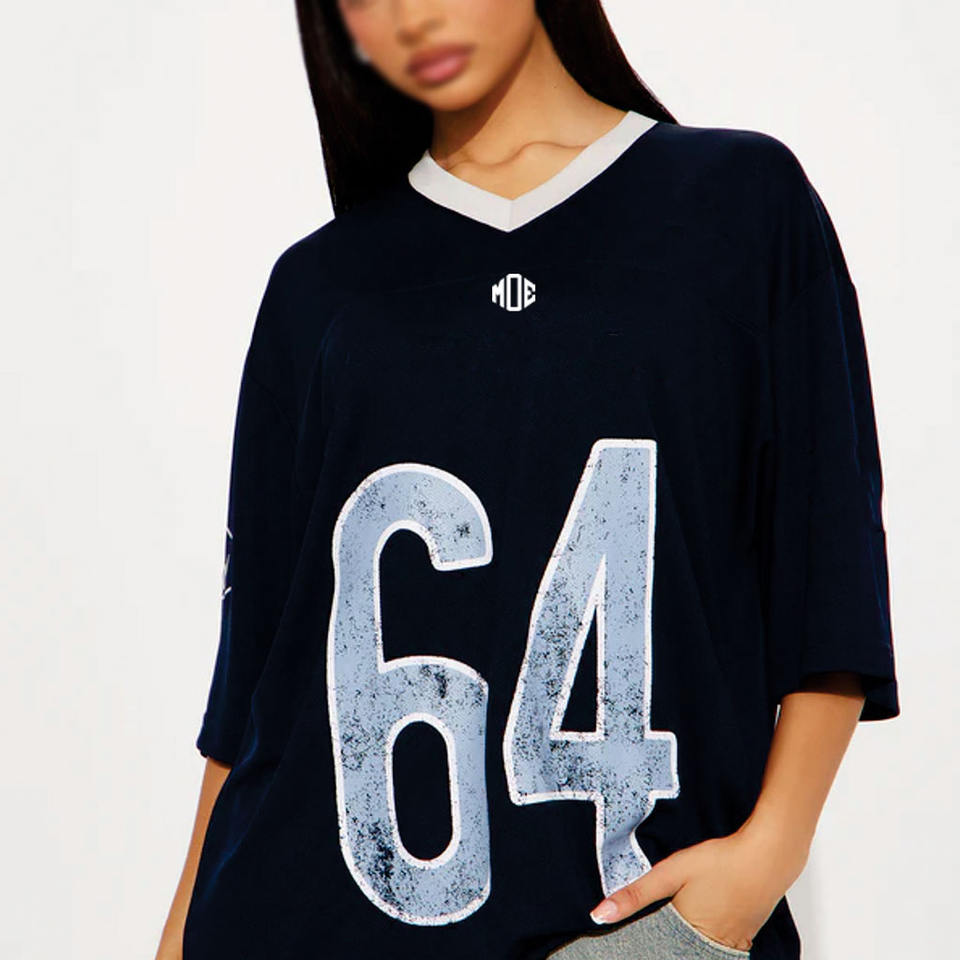 Maillot de football américain surdimensionné à col en V, coupe boxy, épaules tombantes, en mesh, avec impression de logo personnalisé, style streetwear, vente en gros OEM pour femmes