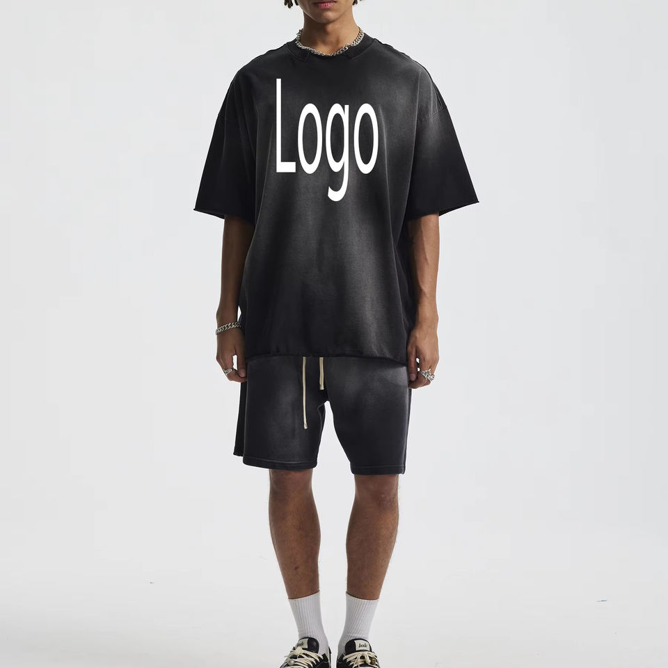 T-shirts imprimés personnalisés avec logo, style streetwear, tendance, manches courtes, en coton, ensembles de survêtements courts pour hommes