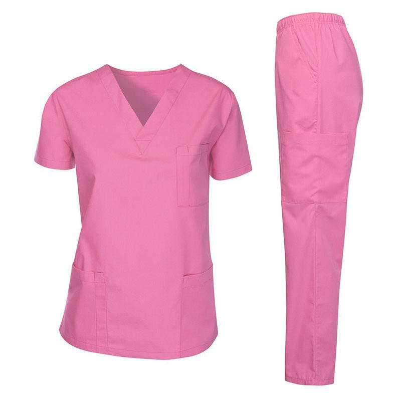 Tenues d'infirmière personnalisées avec logo tissé, ensembles de blouses médicales rose clair, pantalon de jogging extensible pour femmes, infirmières, hôpital, médecins