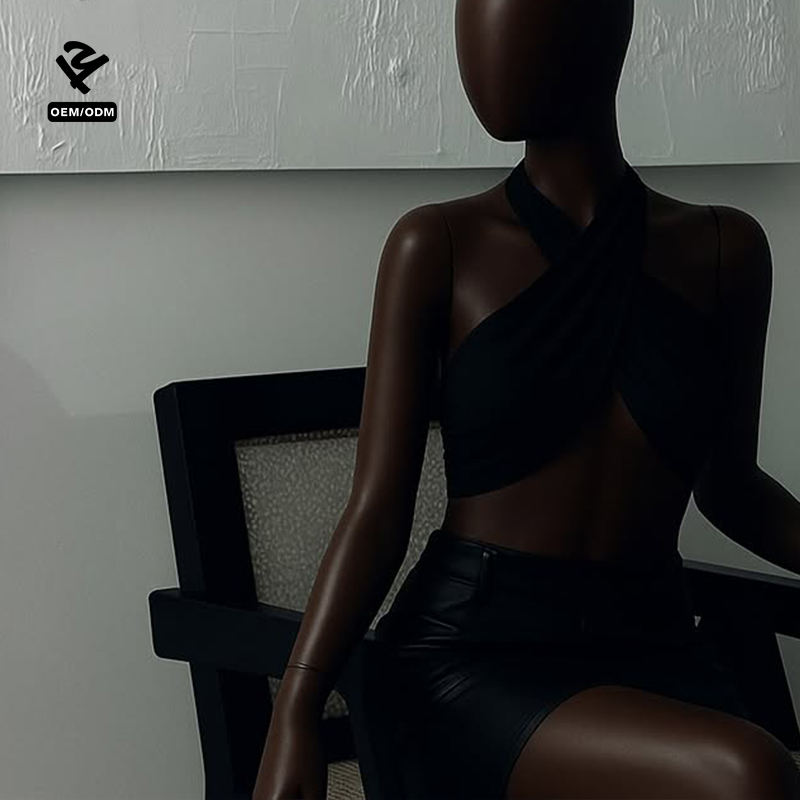 Top court sexy à col halter personnalisé avec logo, top à bretelles croisées, débardeur pour femmes, soutien-gorge de sport pour l'été, streetwear, soirée, club