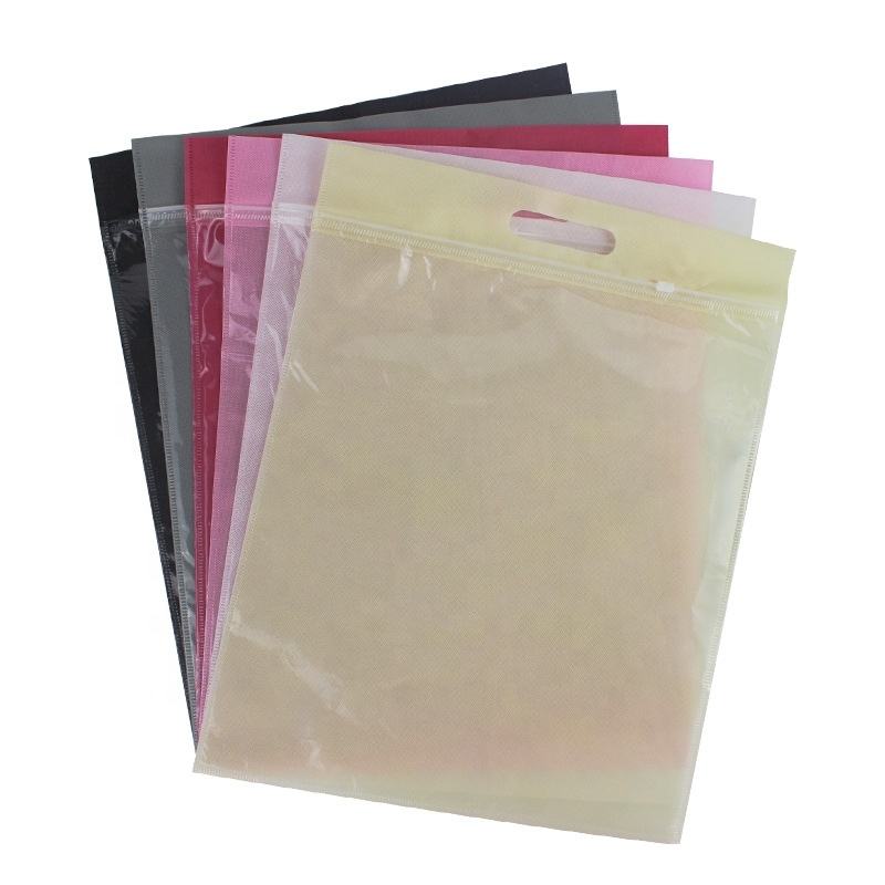 Logo personnalisé sérigraphié refermable non-tissé fermeture éclair sac poignée avant transparente pour vêtements Boho mode robe