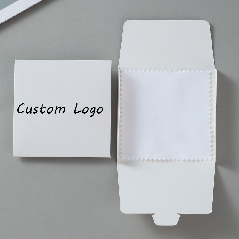 Chiffon de nettoyage argenté avec logo personnalisé pour bijoux, chiffon de polissage en microfibre, emballé individuellement avec emballage personnalisé