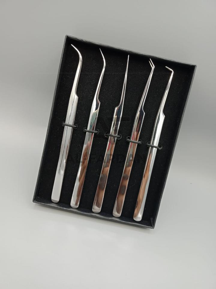 Pince à épiler d'extension de cils de 14 cm d'isolation de finition argentée avec logo personnalisé Pince à épiler de volume de cils de haute qualité